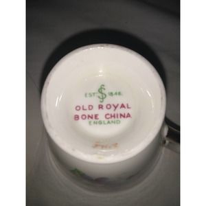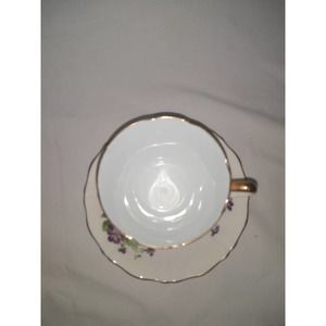 Old Royal bone china england purple and white floral teacup and saucer. Gold accent and handle.