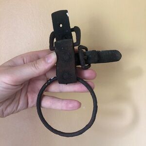 Old rusted metal from what I believe to be related to a stable. Could be something they used with horses back in the day. Don’t know much more beyond that. Maybe someone will want this for their collection:)