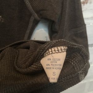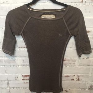 EUC: Gray-brown color Abercrombie & Fitch. Stretchy, as you can see by the stretch while on the hanger. This shirt will hug your body, expect a tight fit! Wear as a basic under a blazer or jacket, or, let it shine on its own for a casual jeans - t shirt look. Live out your inner prep!