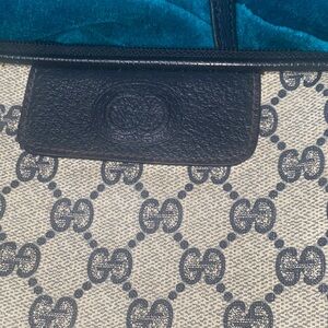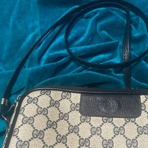 Chic Gucci crossbody with iconic pattern. Features beige and navy design. Ideal for stylish outings. Navy blue and beige. 6” tall. 10” wide. Actually very spacious considering it’s a small bag. Minor pen mark interior. Please see photo. Open to offers.