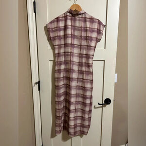 Old Shanghai Hong Kong Style Checker Patterned Cheongsam Dress Qipao sz M brown
