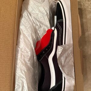 Black/White Old Skool Vans. Durable suede and canvas upper, Vans signature waffle sole, lace up, supportive padded collars.