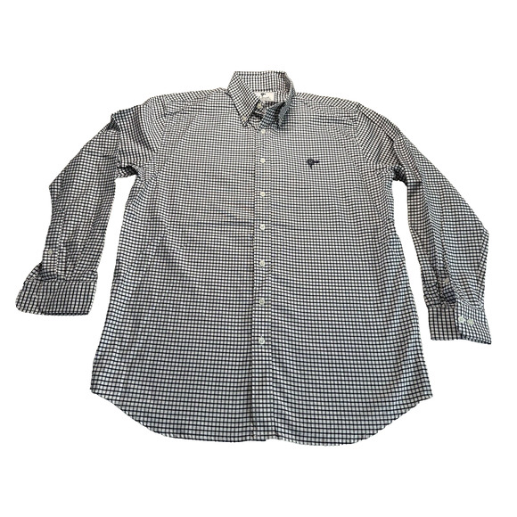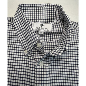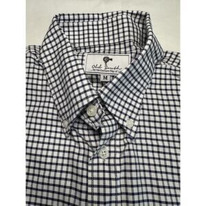 Old South Men's Medium Button Up white/black check Embroidered Logo CLEAN