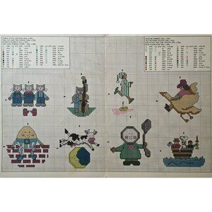 A delightful leaflet featuring old-time rhymes, suitable for cross-stitch on waste canvas. Perfect for creative hobbyists or anyone with a love for vintage designs.