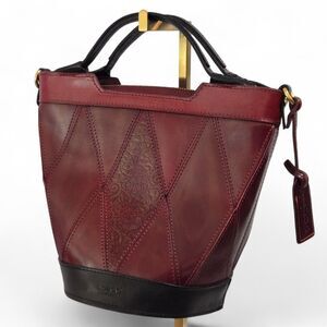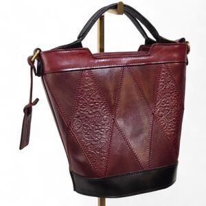 Old Trend Primrose Mini Eco Leather Bucket Tote Bag Burgundy 2 Top Straps Purse