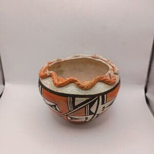 Old Vintage Acoma Pueblo Polychrome Pottery Bowl Olla Pie Crust Rim 3" x 4.5"