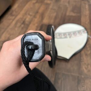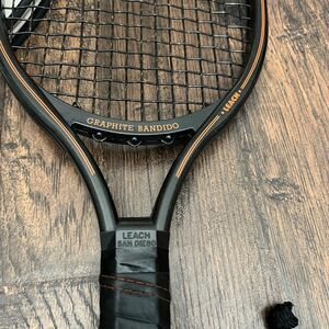 The product is an old vintage Leach Graphite Bandido racquetball racket, manufactured in San Diego, USA. This sporting tool is designed for racquetball enthusiasts looking for a high-quality and unique piece for their collection. With the brand name Leach and a model specifically known as the Graphite Bandido, this racket carries a sense of nostalgia and uniqueness for those interested in vintage sporting goods.