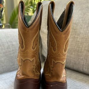 Old West 1936Y Kids Western Brown Leather Cowboy Boots Calf Hight Size 45
