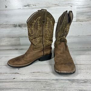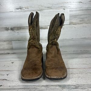 Old West BSC1877 Kids Western Boots Mid Calf Pull On Leather Brown Size 13D