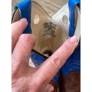 Old West BSY 1840 Cowboy Boots Brown Toe/Heel with Blue Shafts. Square toe. GUC. Just realized after all these years left is a size 7 and right is a size 6. My son nor I ever noticed. 🤣 See Pics.