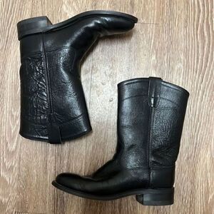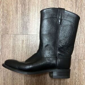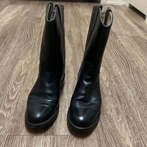 Men's Old West Black Leather Round Toe Roper Western Cowboy Boots Size: 5.5, great pre owned condition a few scuffs on toes