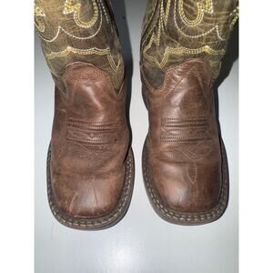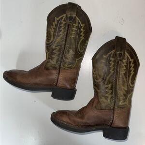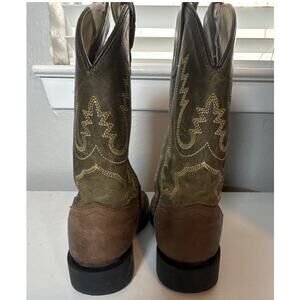 Old West Brown Olive Brown Kids Western Cowboy Boots Toddler Size 8.5 Leather
