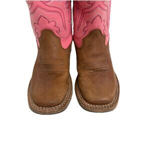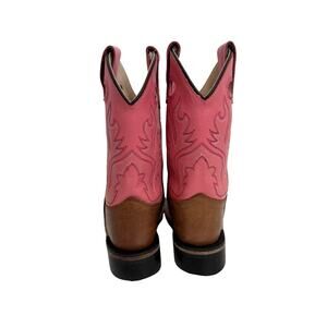 Old West Girls Pink & Brown Leather Cowboy Boots Kids 9D Square Toe