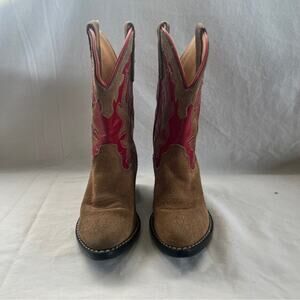 Old West Leather Cowgirl Boots Red Brown Toddler Size 100 Rodeo Western Country