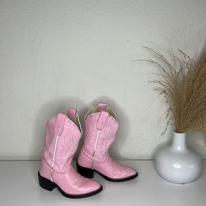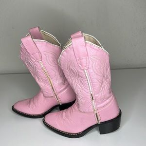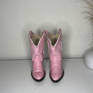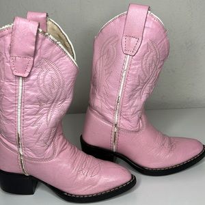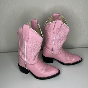 Old West Pink Childrens Girls Corona Leather J Toe Cowboy Western Boots Size 8.5
