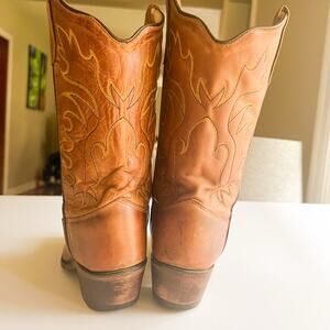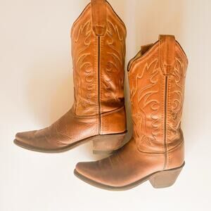 Old West Tan Canyon Childrens Girls Leather 8 in Snip Toe Cowboy Boots St CF8229