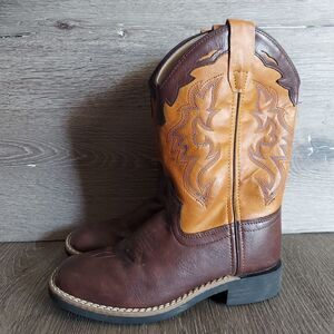 Old West Children All Over Leatherette Material Broad Square Toe Western Boot 2D