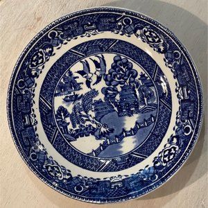English Ironstone Pottery created the Old Willow pattern circa 1980. This lovely cup and saucers back stamp is noted as, Old Willow English Ironstone Pottery College Road Shelton Stoke on Trent Staffordshire England. The saucer's approximate dimensions are 5 1/2" in diameter and the cups are 4 1/2" w x 3 1/4" h. The cup and saucer are in good vintage condition, but please review pictures carefully as your idea of good may be different from mine. Thank you for perusing our cup and saucer.