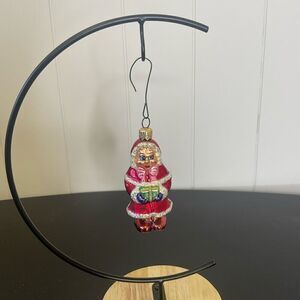 Old World Christmas Glass Ornament 2 Sided Santa & Mrs Claus Red 3.5" Tall