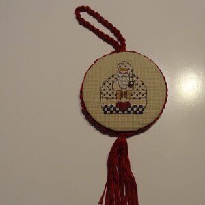 Old World Santa Christmas Tasseled ornament Finished Cross Stitched 6" New