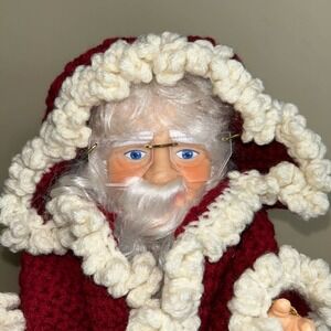 Vintage Santa piece made in the United States in 1994. The doll features mixed materials, including plastic and yarn, and is multicolored to add to the festive holiday spirit.