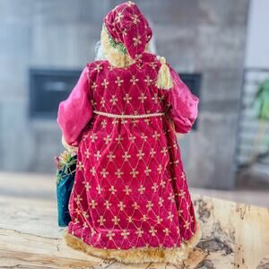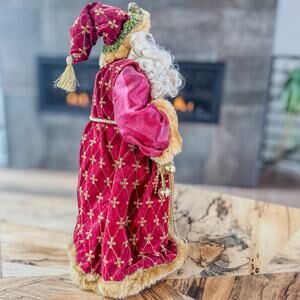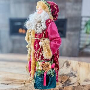 Old World Traditional Santa Claus Maroon/Gold Velvet Robe Treetop/Tabletop Decor, Holiday Decor, Christmas Decor