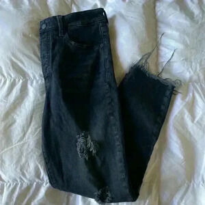 Old navy OG straight street size 8 black button up distressed raw hem jeans