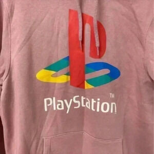 Old navy PlayStation light pink hoodie in size medium. This hoodie is lighter and more pink in person. In great to good used condition, the only sign of wear I can see is some super minor piling.