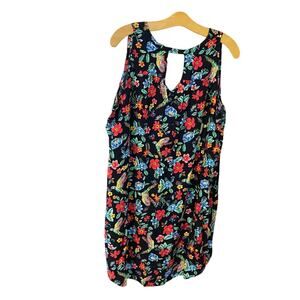 plus size dress, tropical dress, Old Navy XXL, bird print dress, floral sundress, summer dress, vacation outfit, casual swing dress, rayon dress, sleeveless keyhole dress, beach cover-up