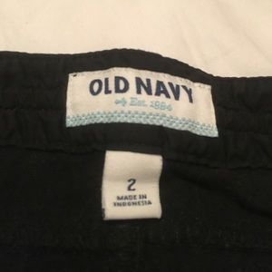 Old navy black linen shorts. They're a size 2. They have pockets on the front and back and a drawstring. Only worn a few times.