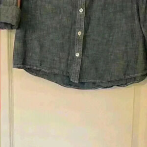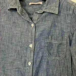 Basic chambray collared shirt. Pocket on left side. White stitching. Size m