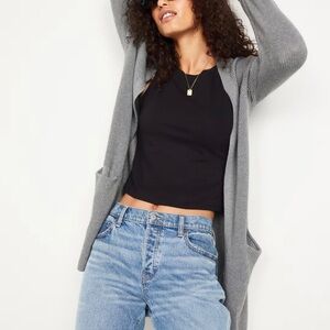 Stay cozy and stylish with this elegant gray open front sweater. Perfect for layering and adding a touch of sophistication to any outfit.