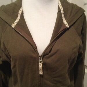 It's between a green and a brown, military like color... Tag says large but fits like a medium.