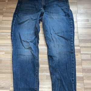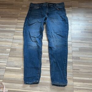 In good used condition from old navy! These medium wash skinny jeans are a midrise, full length. 5 pocket design, lots of stretch! Very slight wear on inner thighs but a lot of wear left! Size 16 regular.