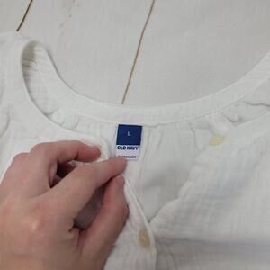 Cute Old Navy puff sleeve mini dress! Bright white with button and waist-tie detailing. In excellent condition, size large.