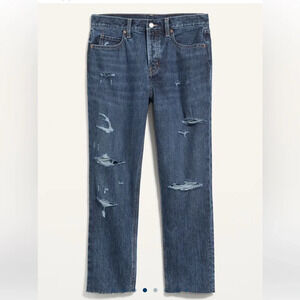 Keywords: Old Navy jeans, high rise straight leg denim, distressed jeans, casual everyday denim, trendy ripped jeans women’s