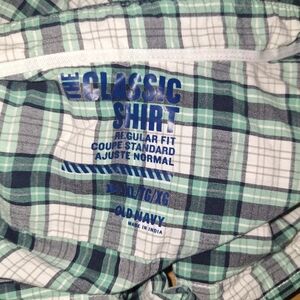 Old navy men's plaid button-down XL pit to pit size is 25" top of shoulder to bottom hem is 31" if you have any questions please message me bundle more items for bigger deals Bin-112