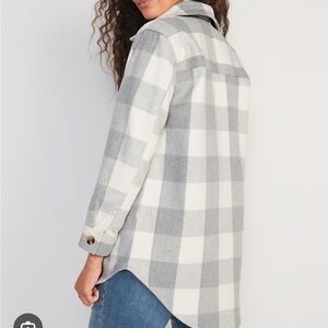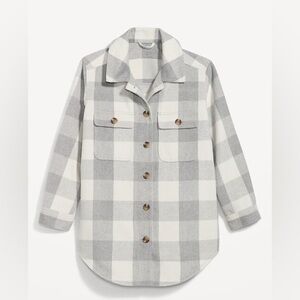 Old navy shacket gray white plaid flannel buttonup size small oversized camping