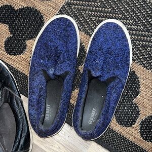 In used condition from old navy. Bundle of three pair of slip on sneakers size 9. Show plenty of wear but a lot of wear left! Black quilted, black and blue wool and black floral print. Footbed measures approximately 10”