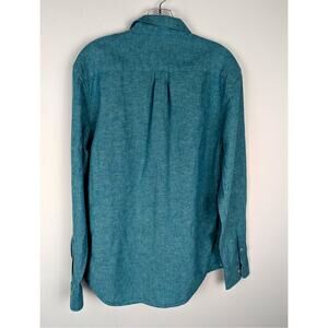 Old navy slim Sz M Teal green mens Linen shirt GUC Chest 41"Center Back length31"Sleeve26"