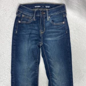 Euc pfsf dark blue old navy straight built in flex jeans button zip fly no stains, tears or holes no wash wear