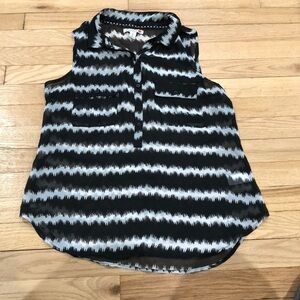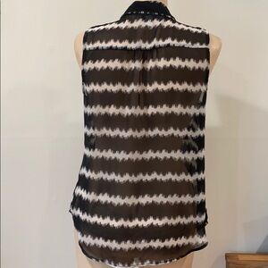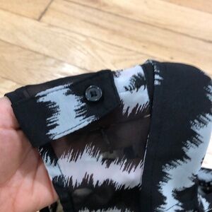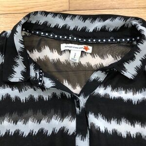 Good preowned condtion. Buttons half way up. Sheer top, must wear a shirt under. Approximate measurements flat: pit to pit 17