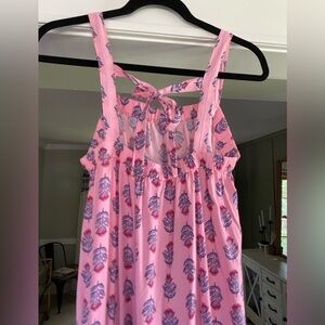 Boho summer dress with stretch detail at the top, has pockets, tie in the back to adjust. Light weight