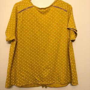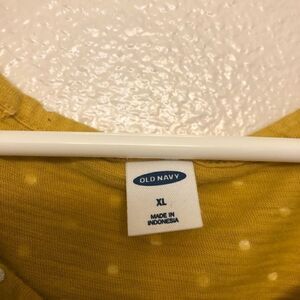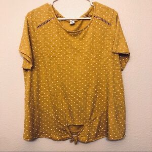 Old navy tie front mustard marigold yellow polka dot top front tie t shirt XL