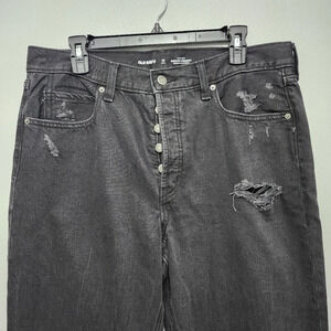 Old navy women's jeans high rise slouchy straight size 12 tall black secret slim pockets button fly distressed baggy