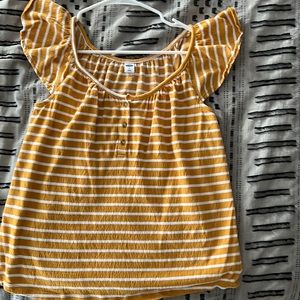Old navy Flutter sleeve blouse. button front yellow and white stripe top. Scoop neck tee.