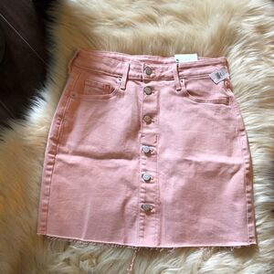 Old navy bubble gum denim button up frayed hem skirt size 6 NWT