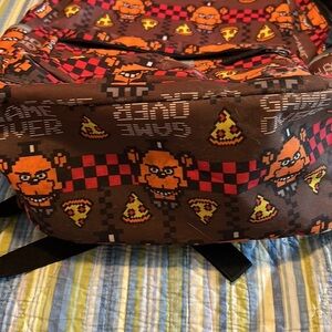 One of the old original back packs. Great shape. One big pocket and a slip inside of it. One front pocket. Both zippered and work great. One side pocket for water bottles.