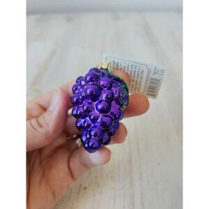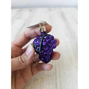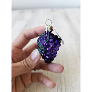Old world OWC miniature grape fruit glass ornament purple glitter green Xmas tre