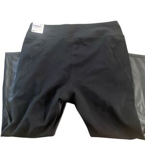 Old Navy Active NWT 2X Plus High Rise Black and faux leather panels on front